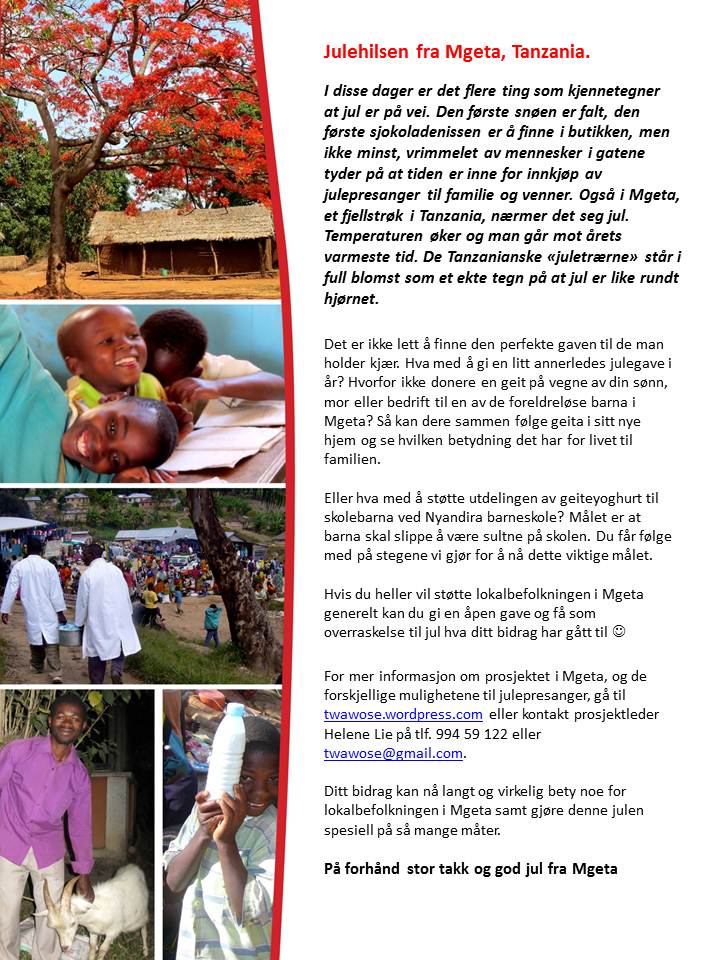 Dette innlegget ble publisert i Årsrapport og merket med annerledes julegave, god jul, Julebrev, julegave, julepresang, mgeta, støtte lokalbefolkning. Bokmerk permalenken.