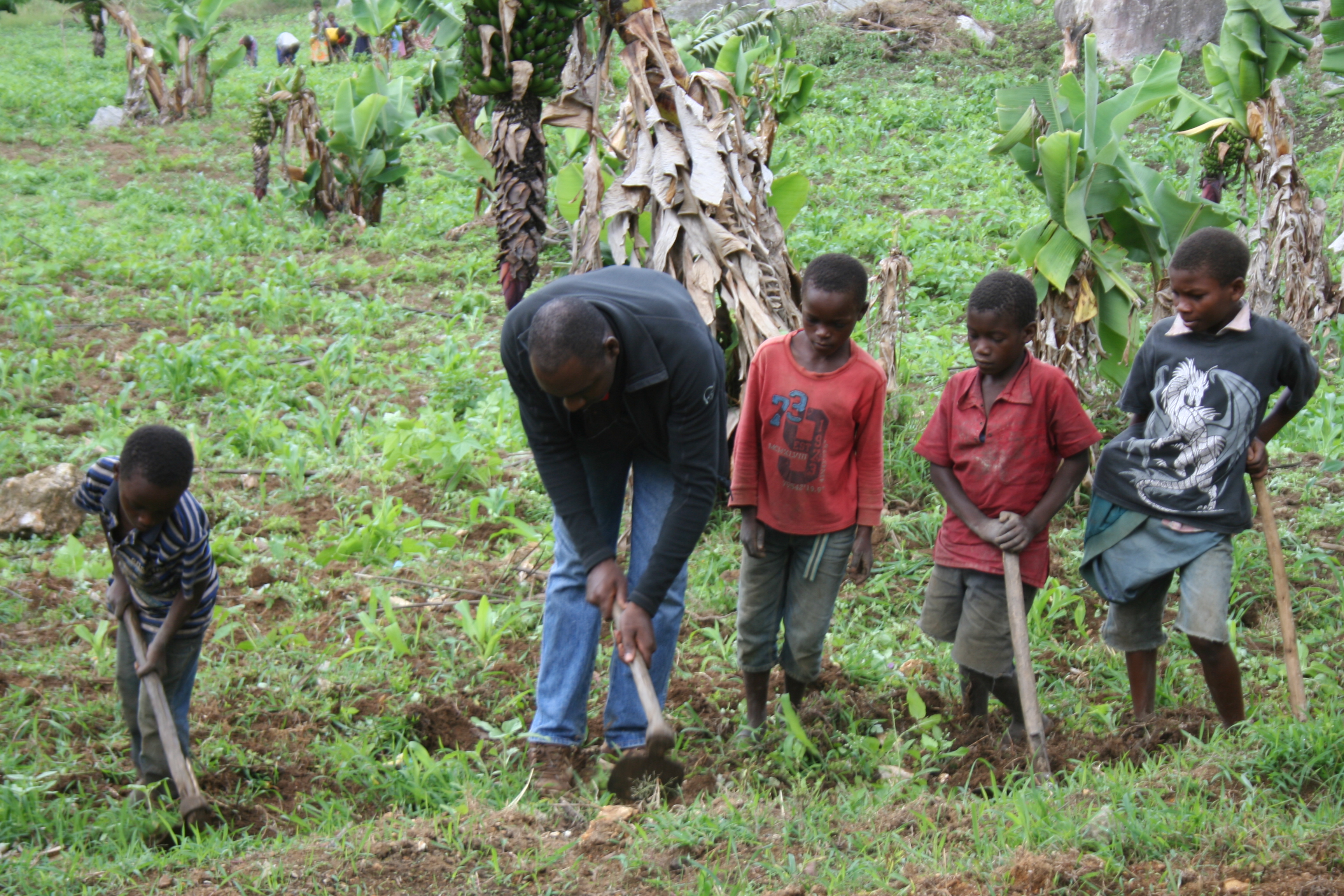 Athman viser bruken av Afrikas viktigste jordbruksredskap for elever ved Kibuko barneskole, naboskolen til Nyandira