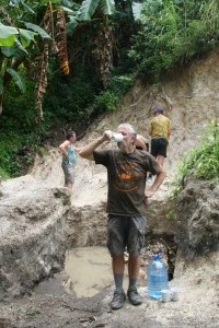 Odd Jarle tar velfortjent drikkepause under utgraving av sand til murstein til det første internatet i Luale i februar 2015