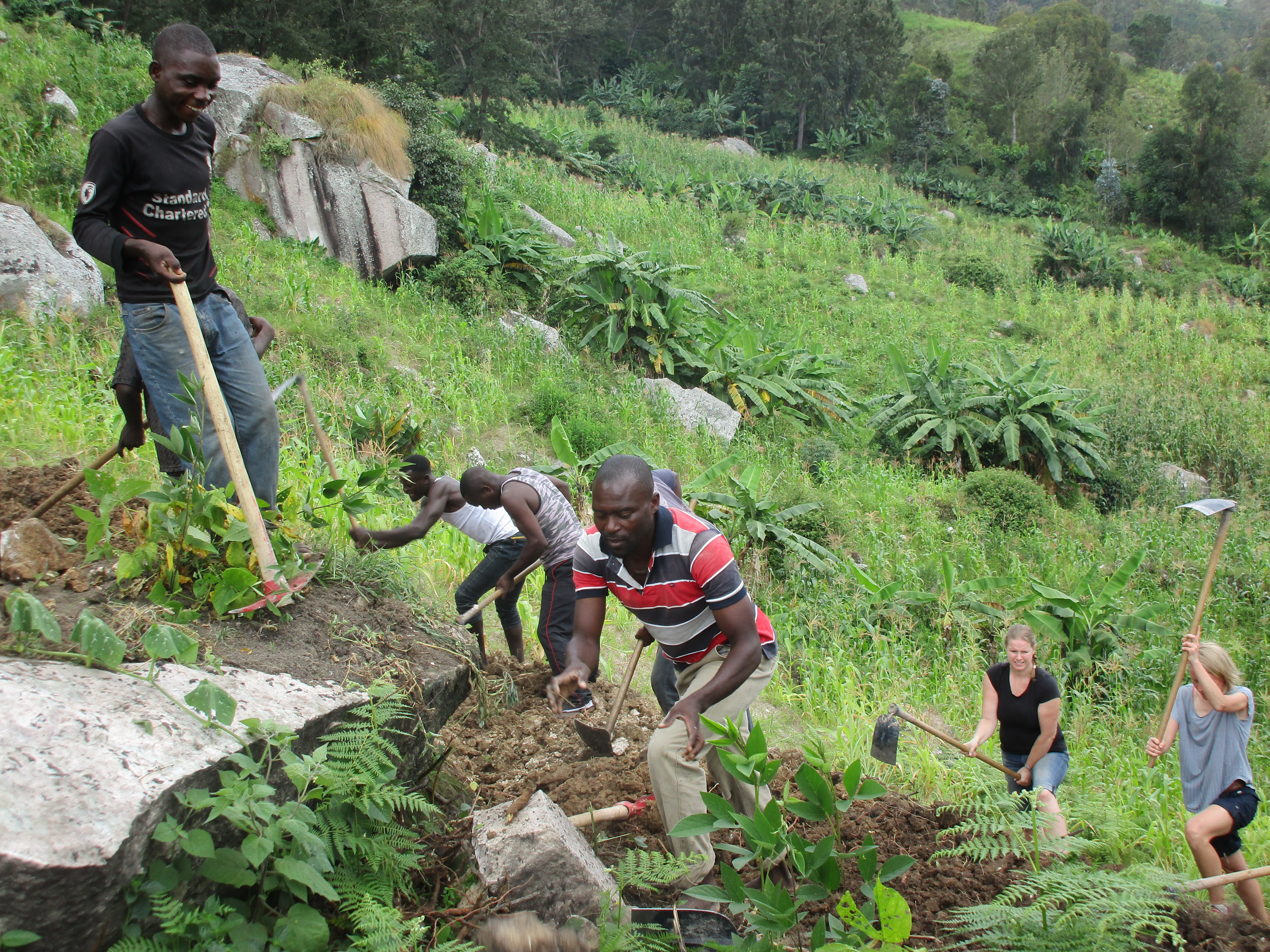Bønder fra Luale og venner fra Norge hakker fram faste terrasser til nytt forsøksfelt