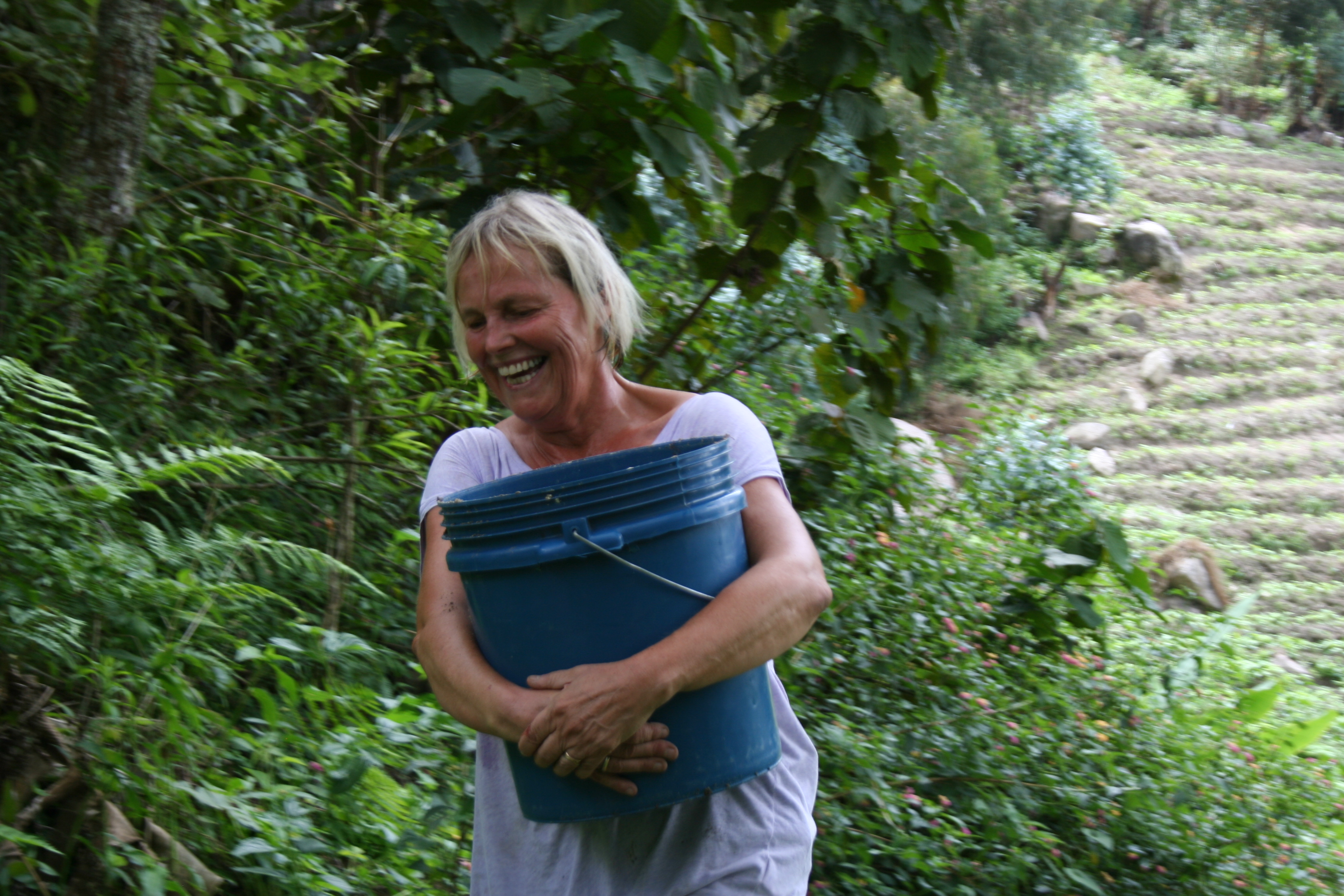 Marianne bærer sand til byggingen av internatet i Luale