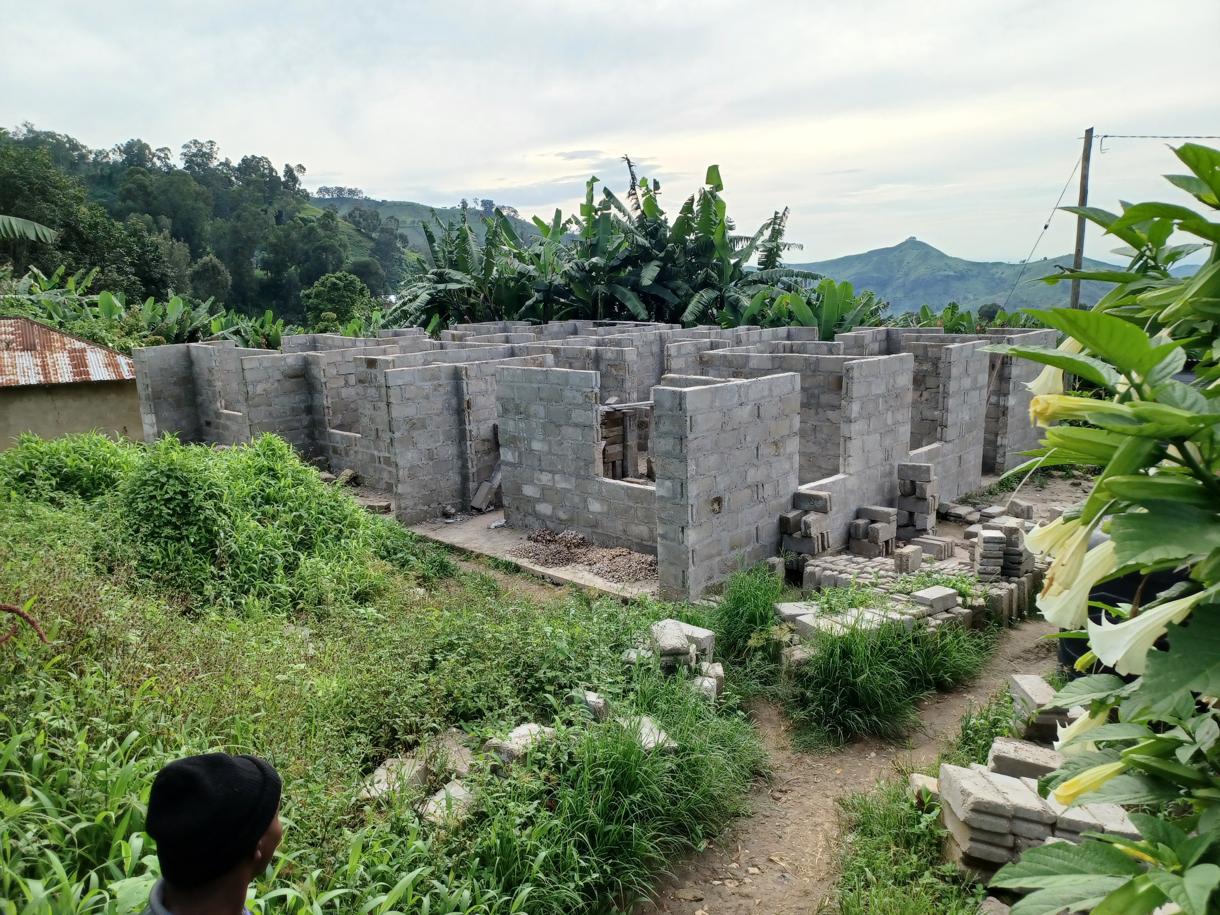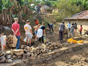 Samarbeid mellom lokalbefolkning og elever fra Sagavoll folkehøgskole om å lage grunnmuren til leilighetsbygg for lege og to sykepleiere i Luale