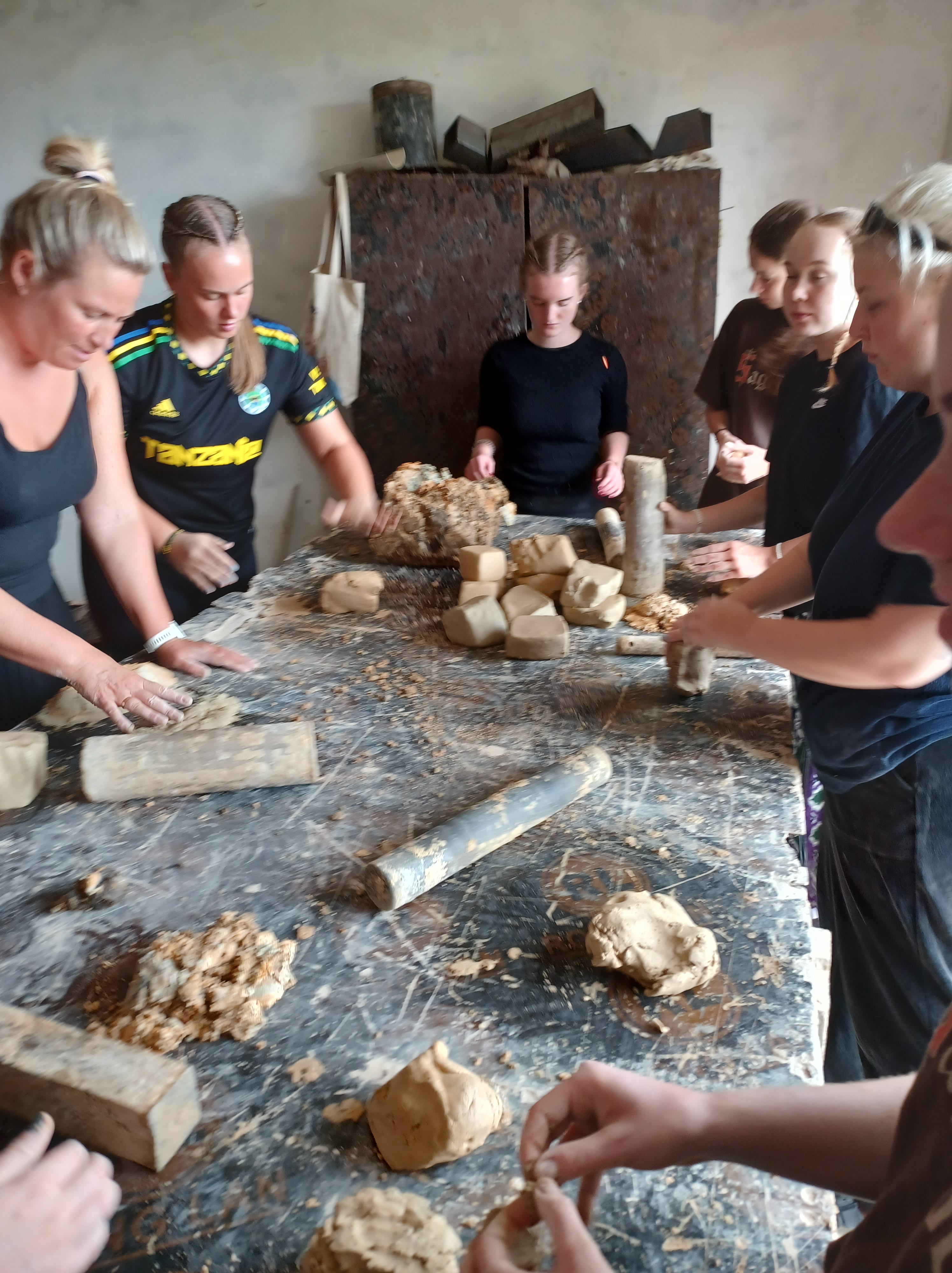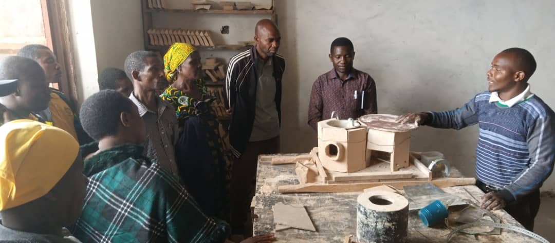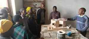 Emmanuel forklarer hvordan ovnen Karl har utviklet og konstruert fungerer for en gruppe med deltakere fra alle landsbyene i Mgeta. Elementene til ovnene formes av lokal leire i et entreprenørskapsrom i senterets kjeller. Utenfor brennes elementene i en ordinær mursteinsovn før de settes sammen som bildet viser. Ovnene kan fyres med småkvist og sparer skog, er mer effektive enn tresteinsbålet og fører røyken ut av huset i pipe. Om lag 3 millioner mennesker dør årlig av røykskader fra matbålene i Asia, Afrika og Sør-Amerika. Karls ovn kan være en løsning.
