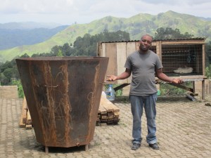 Solomon har fått sveiset to ovner i omvendt pyramideform til å lage biokull av greiner, blader og planteavfall. Kullet blir most, blandet med urin og deretter brukt som jordforbedringsmiddel. Solomon vil ikke at ressurser skal gå til spille og brukte hele lengden av innkjøpte jernplater. Bak Solomon står kaninburet som ble laget av Thomas og Gasper sammen med gjestene fra Dalen i november. Kaninene avgir 1 liter urin pr. dag, som brukes som økologisk plantevernmiddel eller gjødsel.
