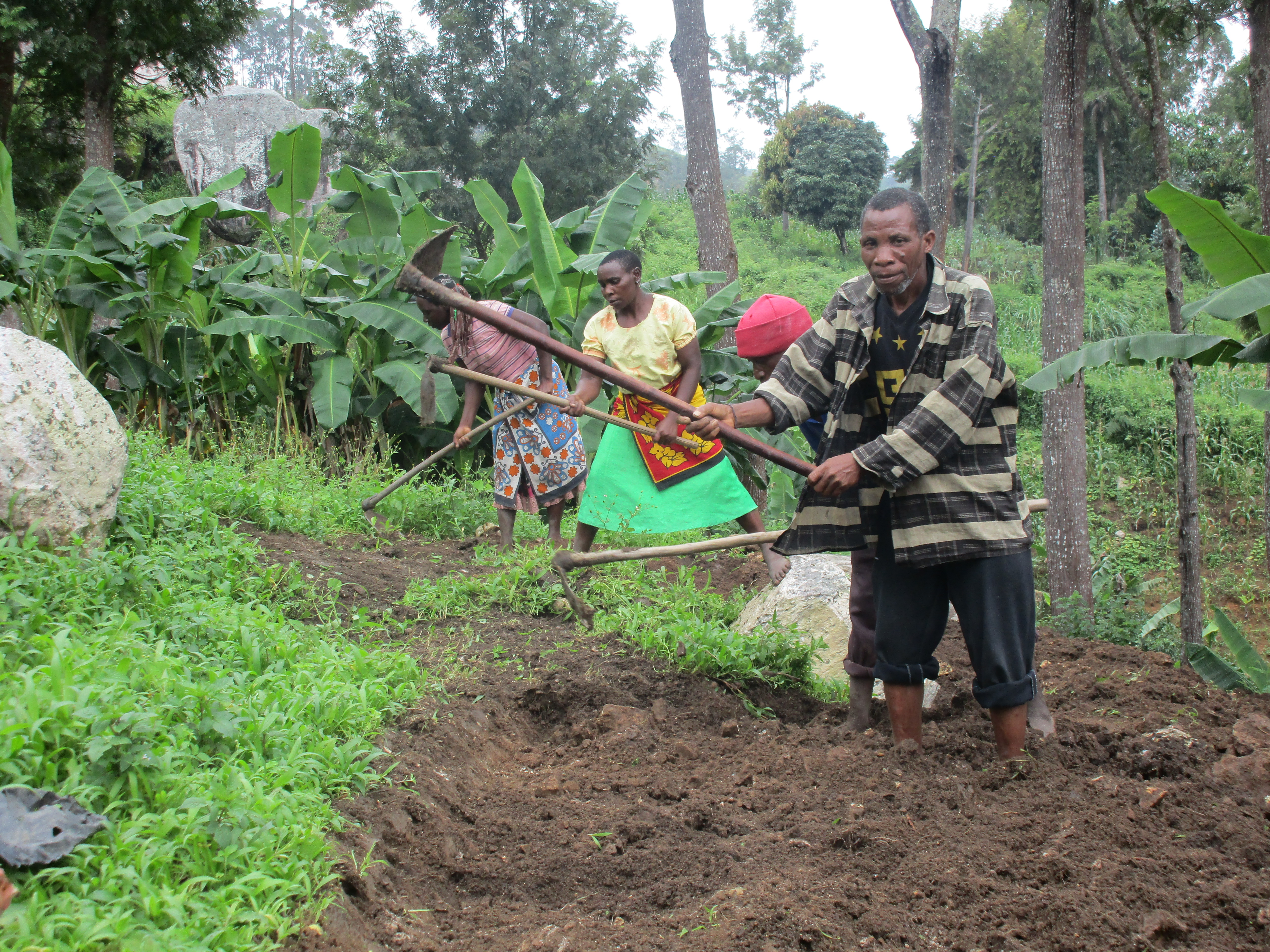 Foreløpig har vi engasjert lokalbefolkningen til å rydde, plante og høste på Dalen-jordstykket. På bildet sås bønner, en av de viktigste råvarene i kostholdet i Mgeta. For tiden læres jentene på internatet opp til å stå for dyrkingen