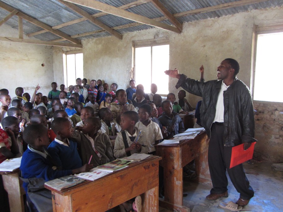 Elevene ønsker også å lære om melkegeiter, her med en munter og praktisk orientert lærer Solomon